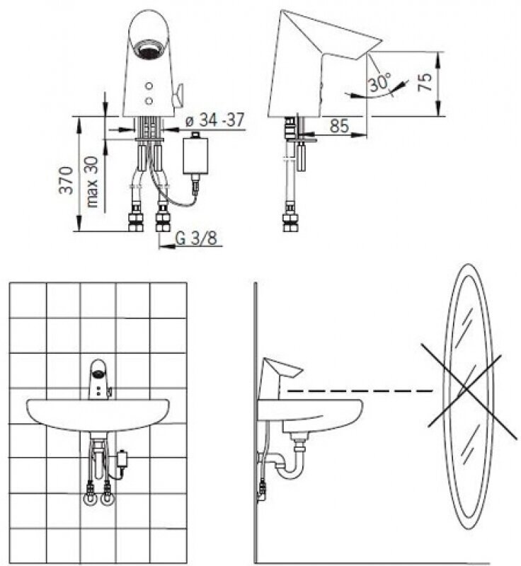 Не рекомендуется устанавливать сенсорный смеситель напротив зеркала, это приведет к его неправильной работе!
