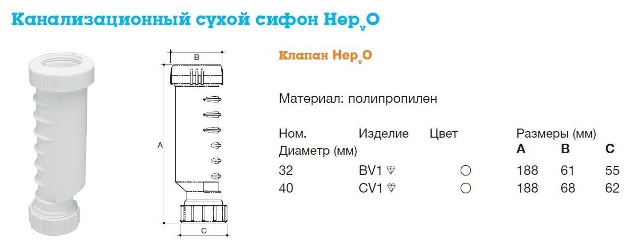 Сухой сифон CVI/M DN40 мм Hepworth - надежное и качественное решение для вашей мойки.